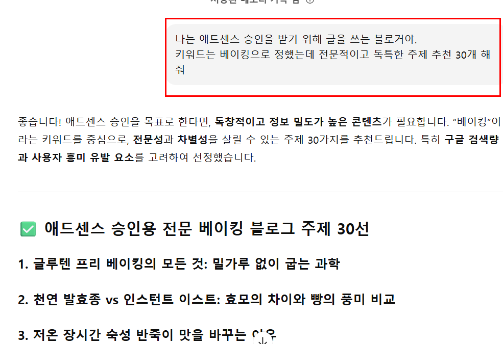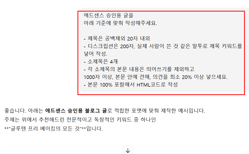주제를 정했다면 주제에 맞는 본문을 작성하기 위한 명령어 예시입니다.