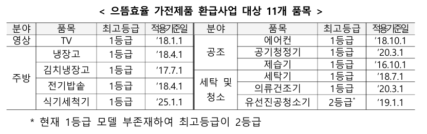 • 2025년 7월 4일 이후 구매한 에너지 소비효율 1등급 가전제품